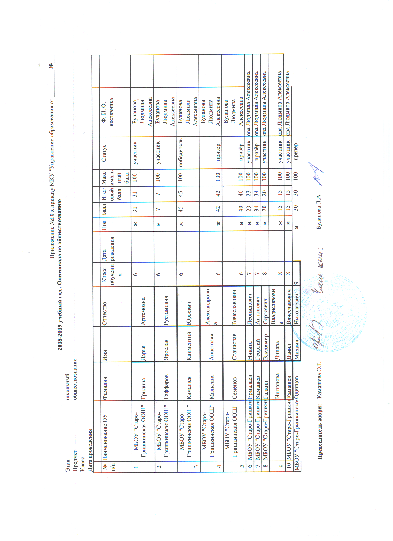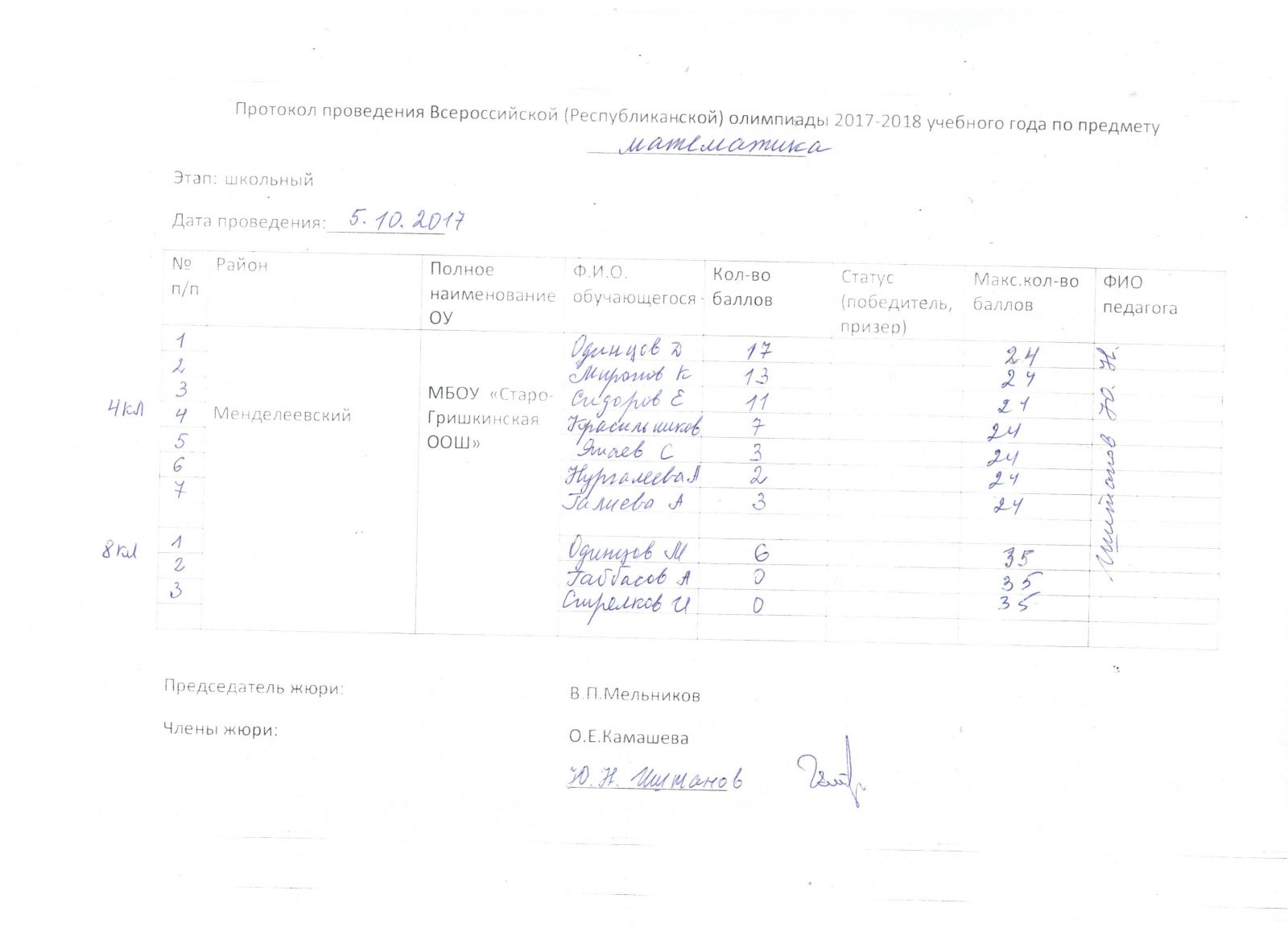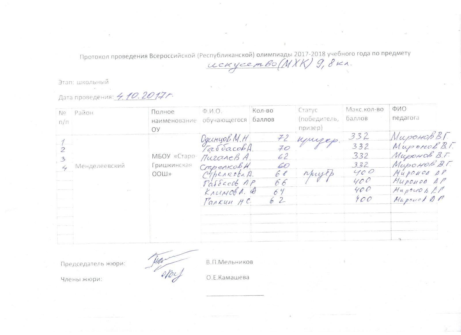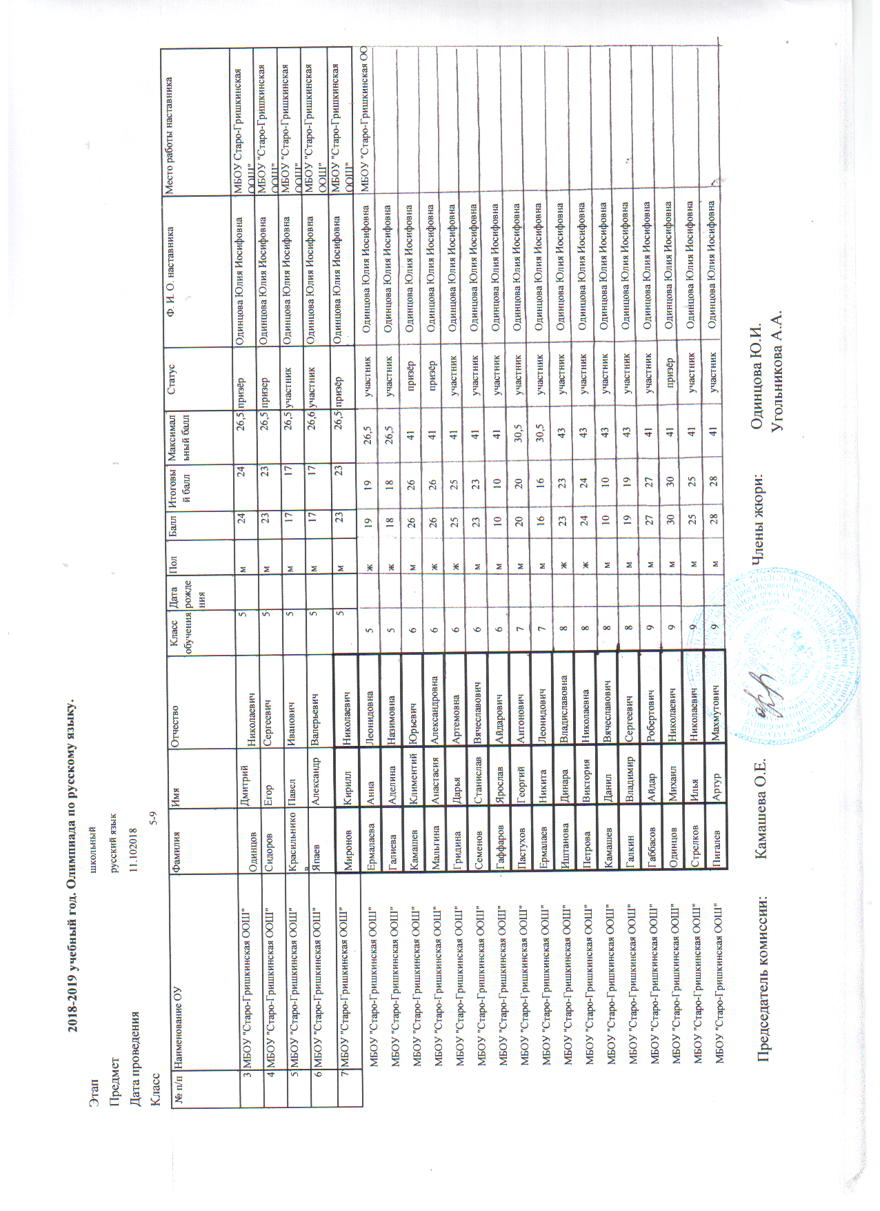 Протоколы: История, Русский язык, Физика, Математика, География, Биология, Геология, История Татарстана, Искусство (МХК), ОБЖ, Право, Технология, Обществознание, Физика, Химия, Русская литература (НШ), Русский язык (НШ), Татарская литература (ТШ), Татарский язык (ТШ), Физическая культура