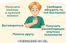 В трудных жизненных ситуациях школьники и их родители могут анонимно обратиться за помощью к специалистам, готовым выслушать, поддержать и дать полезные советы по любым вопросам...
