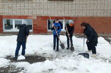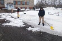 26 марта юнармейцы МБОУ "Тат.Челнинская ООШ" раскидали остатки тяжелого, успевшего спрессоваться, снега на территории школы...