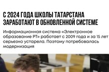Школы Татарстана перешли на обновленное «Электронное образование РТ» / Татарстан мәктәпләре яңартылган»ТР Электрон мәгариф " кә күчте 09.01.2024