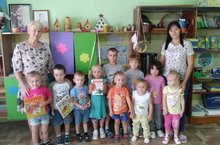 Международная акция «Книжка на ладошке» знакомит детей в возрасте от 1,5 до 7 лет с лучшими произведениями современных детских писателей.Заведующая сельской библиотекой Медведева Надежда Степановна вместе с дошкольниками совершили путешествие по творчеству детских писателя В. Сутеева. Громкое чтение и обсуждение сказок «Под грибочком » и «Мешок яблок» вызвало у детей яркие неподдельные эмоции. Юные читатели отвечали на вопросы по прочитанным вслух произведениям, много вопросов задавали сами, с удовольствием веселились, увлекаясь в сюжеты прочитанного.