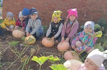 В садике " Белочка" урожай 2023 г получился на славу. На приусадебном участке вырастили: лук, морковь, свеклу, капусту. Но особенно своим объемом и яркой окраской удивили ребят тыквы, которые они весной сами семенами посеяли в стаканчики, а затем рассаду высадили в грунт.