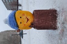 21 декабря коллектив Тихоновского детского сада " Белочка" и Ижевского детского сада "Солнышко" изготовили фигуру из снега "колобок -желты бок"