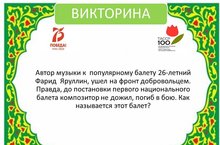 Автор музыки к популярному балету 26-летний Фарид Яруллин, ушел на фронт добровольцем. Правда, до постановки первого национального балета композитор не дожил, погиб в бою. Как называется этот балет? .....