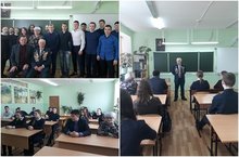 12 февраля в МБОУ «СОШ №2» прошла встреча учащихся 10-11 классов с председателем совета ветеранов отдела МВД России по Менделеевскому району, членом городского общественного совета при администрации В.И.Трапезниковым...