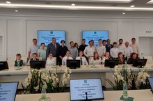 В Доме советов Нижнекамска прошла встреча мэра города Рамиля Муллина с командами апрельского хакатона по цифровым решениям и программированию «TatarCoder»....../Түбән Кама Советлар йортында шәһәр мэры Р. Муллинның «Tatar Coder»цифрлы карарлар һәм программалаштыру буенча апрель хакатоны командалары белән очрашуы узды