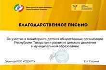 Министерство по делам молодежи и спорту РТ совместно РОО "Совет Детский Организаций РТ" с 24 сентября по 10 октября провели мониторинг детских общественных организаций...