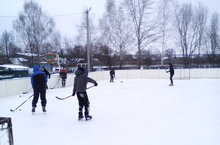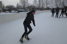 После заливки льда мальчики начали играть в хоккей ,а девочки кататься на коньках.