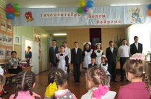 Кеше гомере мәктәп юлы аша,Моңлы бер җыр кебек сузыла.Белем сукмакларын яра-яраКиләчәккә юлы сузыла.Олы юлга сукмак башы,Зур тормыш баскычы син.Серле белем дөньясыныңБердәнбер ачкычы син.Әй, мәктәбем, хәерле юл теләп,Белем ишекләрен ачтың син.Юлыбызны гүзәл итү өченЯкты маяк булып балкыйсың.Белем бэйрэме белэн! -