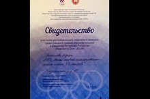 От имени Генерального секретаря Олимпийского комитета России, председателя Олимпийского совета Республики Татарстан М.М.Бариева Айдару Галимову вручено свидетельство участника республиканского творческого конкурса среди учащихся средних образовательных учреждений «Навстречу Сочи-2014».