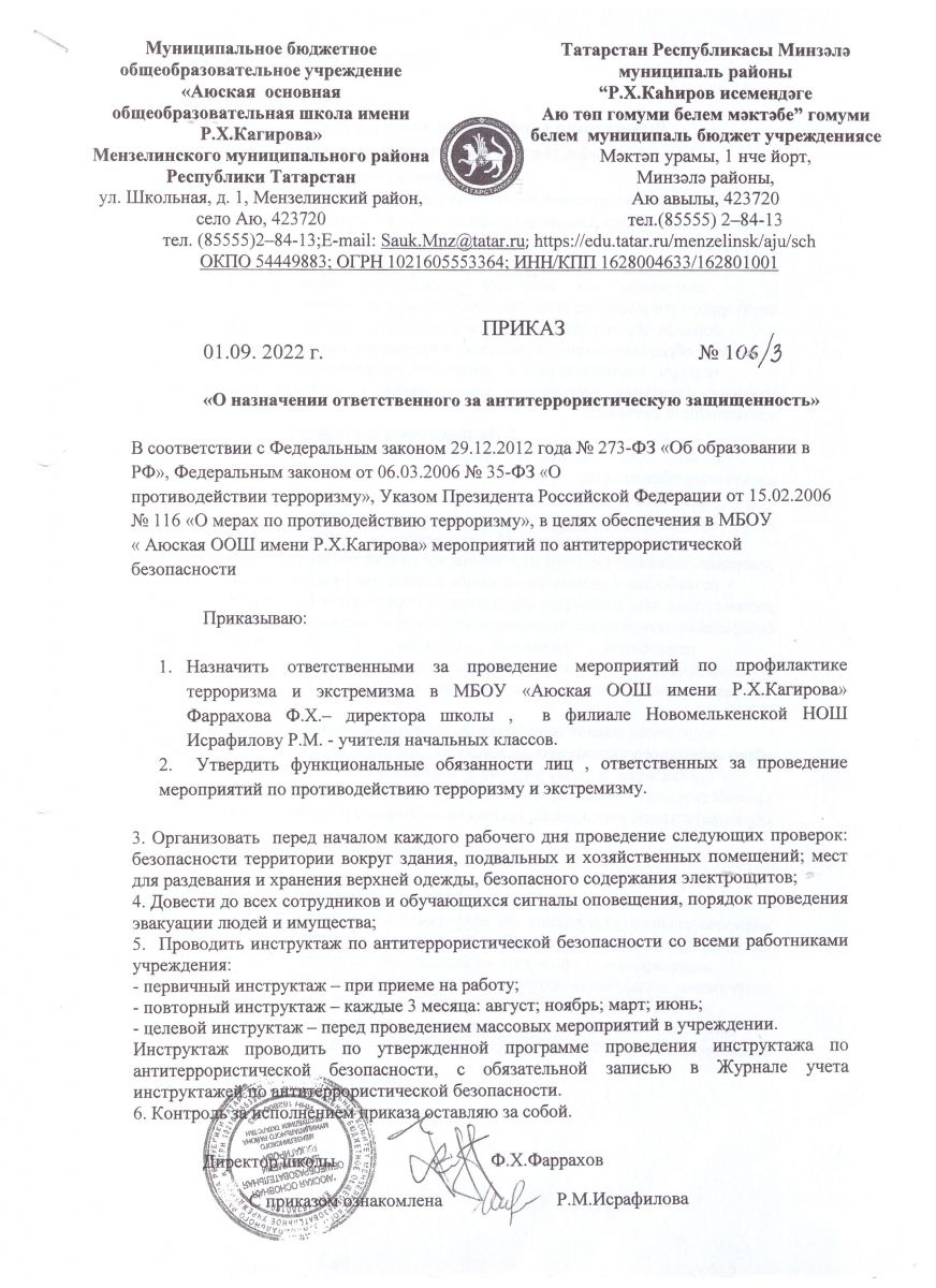 ПРИКАЗ Об усилении мер безопасности ОО 2024-2025гг.