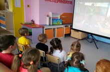 Дети младшей, старшей, средне-подготовительной групп учавствовали в просмотре ролика по ПДД