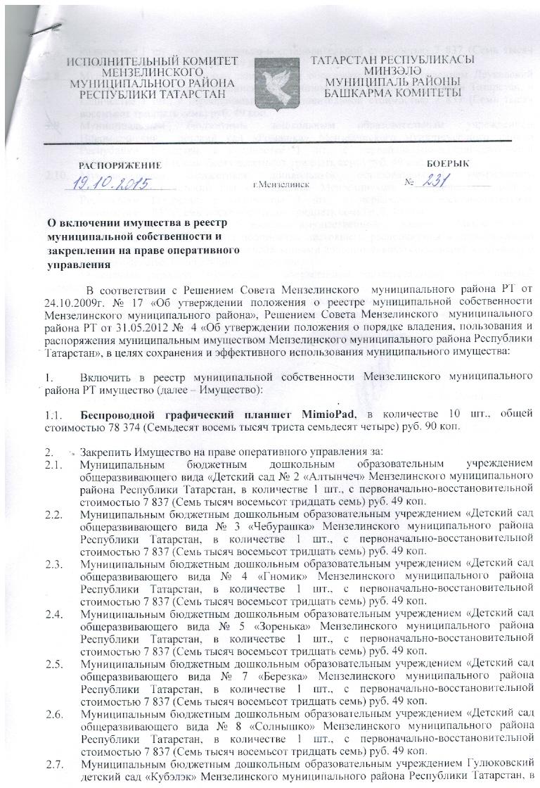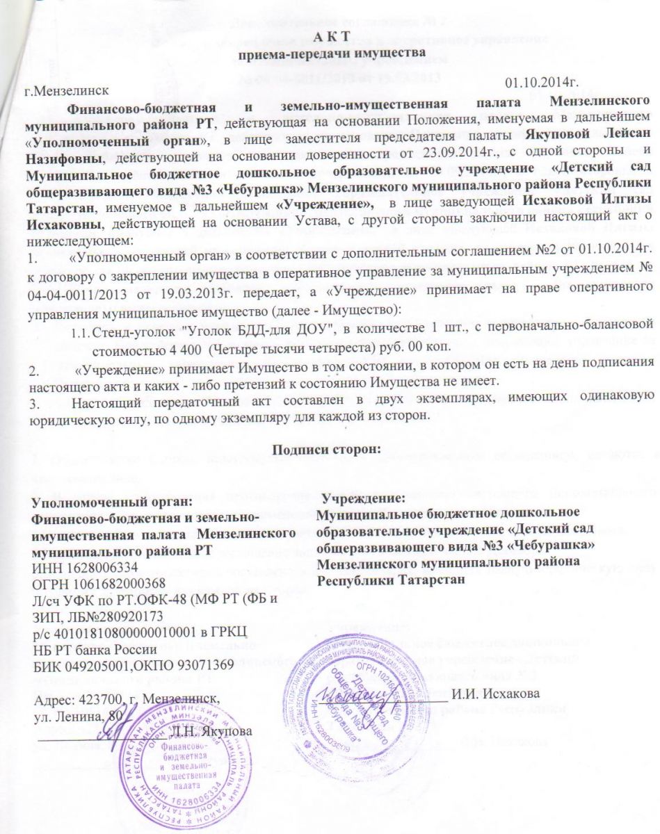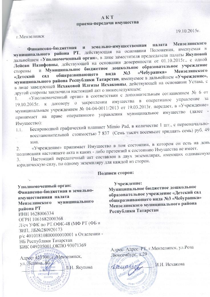 Договор о закреплении имущества