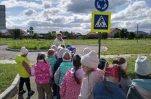 Дети старшей и подготовительной к школе группы посетили Парк Победы, с целью закрепления дорожных знаков. С детьми провели беседу, для чего нужны дорожные знаки и почему нужно их соблюдать.