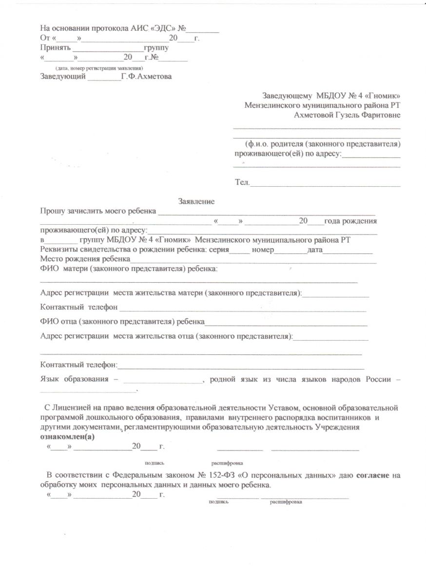 Заявление о приеме детей в ДОУ >>>