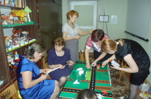 Коллектив нашего детского сада изготовил макет территории города Мензелинска , где расположен наш детский сад . В макете указали прилегающие улицы, объекты , жилые дома, дорожные знаки и разметку.