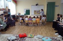 В рамках методической работы сегодня в детском саду был проведен открытый показ педагогического мероприятия с детьми: Гребнева О.Л. показала занятие по развитию речи в старшей группе на тему "Составление рассказа по картине "Собака с щенятами". После показа занятия прошёл самоанализ занятия воспитателем Гребневой О.Л., затем анализ занятия с методической оценкой со стороны заведующей, методиста и педагогов детского сада. Воспитателем были продемонстрированы методические приёмы с детьми, которые делают занятие интересным, насыщенным по содержанию и помогают другим педагогам использовать эти приёмы в своей работе.