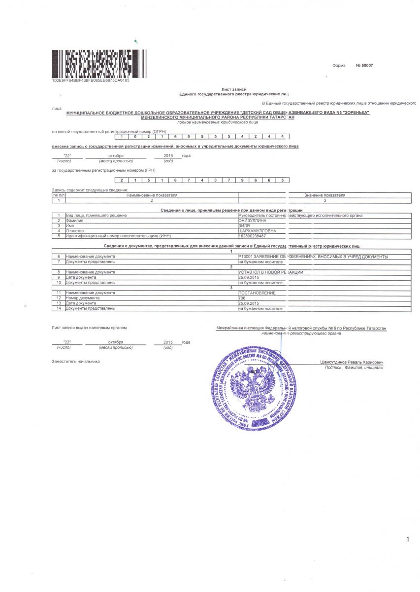 Муниципальное бюджетное дошкольное образовательное учреждение "Детский сад общеразвивающего вида№5 "Зоренька" Мензелинского муниципального района Республики Татарстан\Татарстан Республикасы Минзәлә муниципаль районы "5нче номерлы гомуми үсеш тибындагы "Таңкай" балалар бакчасы" мәктәпкәчә белем бирү муниципаль бюджет учреждениесе