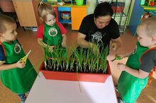 Ещё в начале марта малыши посадили лук, а сегодня собрали свой первый урожай. Ребята вместе с воспитателем срезали пёрышки лука,и передали поварам.Тышта әле салкын, Ә бездә суган өлгерде. Иң чын, Яшел, озын, Витаминлы! Әле март башында ук сабыйлар суган утыртканнар, ә бүген беренче уңыш җыеп алганнар. Балалар тәрбияче белән бергә суган каурыйларын кисеп,пешекчеләргә тапшырдылар.