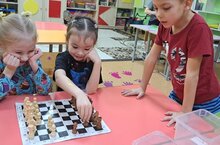 Воспитанники подготовительной группы все больше заинтересовываются активно игрой шахматы. Ребята с большим опытом игры помогают ребятам осваивать азы игры.