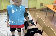 Цель: Ознакомление детей с профессией врача, а также их заботливое отношение к детям и людям.