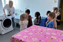 Ребята познакомились с профессией прачки и кастелянши, узнали, как много труда вложено, чтобы полотенца и постельное белье всегда были чистыми и аккуратно выглаженными.