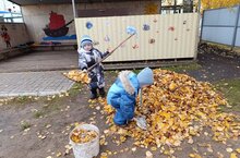 С приходом осени пришла пора уборки листьев. В один из прекрасных осенних дней дети старшей группы под руководством воспитателя устроили уборку листвы на своём участке. С большим удовольствием дети помогали собирать листья в кучи граблями и убирать их в мешки для мусора, ведь благодаря этому ребята могли почувствовать себя сильными и самостоятельными, как взрослые.