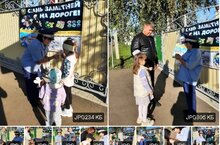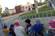 Воспитанники МБДОУ #7 "Берёзка" наблюдали за работой разметочной машиной, которая наносила белый цвет на пешеходную дорожку возле детского сада.