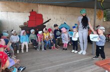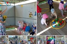 К ребятам в гости пришло "Лето", которое на прощанье захотело поиграть с ребятами. "Лето" поиграло с детишками в разные игры: "Солнышко-дождик", ребята были рады что на них падали настоящие капельки дождика и быстро прятались под зонтик. Игра "Собери шарики" научила детей ловкости, быстроте и умению распознавать цвета. "Лето" Пришла в гости с зайчиком, с которым с удовольствием поиграли. Так же ребята оказались на лесной тропинке, ребятам пришлось проползти через туннель. Они смело ныряли в туннель не боясь ничего.