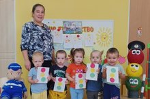 В нашей 1 младшей группе прошло очень увлекательное и познавательное занятие «Наш друг Светофор». Ребятам предстояло помочь инспектору дяде Степе починить светофоры. Для этого воспитатель познакомила детей со светофором, объясняла для чего он нужен. Учила выполнять задание по образцу. Закрепляла с детьми значение цвета светофора: красный, желтый, зеленый. Учила наклеивать круги, чередуя их в правильной им последовательности.