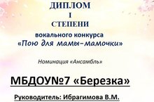 Мәктәпкә әзерлек төркеме "Әнием,әнием өчен җырлыйм" бәйгесендә катнашып, 1 урынны яулады.