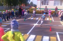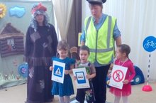 На праздник к детям приходит Баба Яга, у которой сломалась ступа. Она попала в большой город, где по дороге ездят много автомобилей. Баба Яга не знает правила дорожного движения. Дети рассказывают стихи про дорожные знаки, играют в игры вместе с Бабой Ягой.