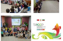 Сегодня в ДОУ для детей средней, старшей и подготовительной групп прошел единый тематический урок, посвященный 100-летию образования Татарской АССР. Дети познакомились с логотипом празднования 100 летия ТАССР, просмотрели мультфильм "Век Татарстана".Герои мультфильма Геральдика Гера и Символика Лалэ рассказали о гербах 43 районов республики Татарстан.