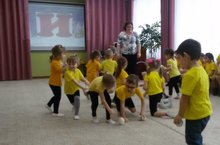 Сегодня в детском саду прошел праздник для детей, родившихся зимой. Ребята младших групп поздравили своих друзей песнями и танцами, а клоун Тяпа поиграл с ними в различные игры ("Собери снежки", "Попади в цель", "Свари компот")
