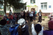 Сегодня инструктор по физвоспитанию и студенты МПК провели весеннюю спартакиаду. Дети проходили 4 станции: 1 - бег на 30 м, 2 - метание мешка, 3 - прыжок в длину с места и 4 станция - "Цветочная". Дети, показавшие наилучшие результаты, были награждены медалями. Студенты МПК каждой группе вручили памятный приз - книгу.