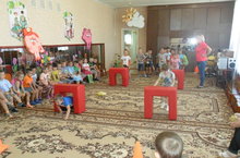 Подготовила развлечение и провела воспитатель татарской группы Зиннатуллина Г.И. Дети играли в игры: "Набери воду", Поймай пузырь", "Мыльная пена", "Да и нет", рассказывали стихи, проводили опыты с водой и мылом. Воспитатель показывала фокусы с водой. В конце праздника ведущая развлечения устроила мыльное шоу с большими мыльными пузырями.