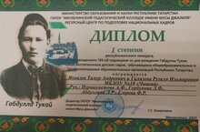 В Мензелинском педагогическом колледже имени Мусы Джалиля прошел республиканский конкурс, посвященный 139-ой годовщине со дня рождения Габдуллы Тукая, среди воспитанников детских садов, обучающихся общеобразовательных и профессиональных образовательных организаций Республики Татарстан. Воспитанники МБДОУ №10 "Чишма" Яковлев Тимур и Гилязова Рузиля стали победителями данного конкурса.