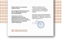 Педагогларның Бөтенрәсәй тестлаштыруында безнең мәктәп педагоглары аеруча актив катнашты. Һәр укытучы предмет юнәлешендә һәм ФГОС таләпләре буенча сорауларга җавап бирде. Бу киләчәктә оештырылачак педагогларга аккредитация барышында бик файдалы булачак.