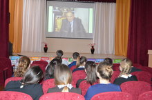 Татар теле һәм әдәбияты укытучысы Заһриева Г.Р., 5 нче сыйныфның ата-аналар комитеты әгъзасы, “Веста” яшьләр үзәге әгъзасы Нуриева Г., җитәкчелегендә, 5 нче сыйныф укучылары М.Ш.Шәймиевнең 80 еллыгына багышланган “Под счастливой звездой” дигән дәрес-презентация карадылар.