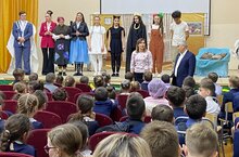 Гимназия укучылары алдында Казан театр училищасының 3 курс татар актерлык курсы студентлары чыгыш ясады, алар бүләккә әкият тә алып килган иде.Укучылар артистлар арасында гимназиядә белем алучы Шакиров Рауф та булуына горурланып утырдылар.