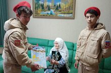 В преддверии празднования 78-ой годовщины Победы в Великой Отечественной войне, Юнармия МБОУ "Гимназия" поздравили и вручили подарки ветеранам Великой Отечественной войны : Фархутдиновой Минеанисе Камаловне и Мухаматдинову Миннерауфу Мухаматдиновичу.