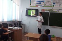 В рамках реализации плана проведения Дня защиты детей в 4Бклассе медсестра гимназии Гарипова Г.Р. провела беседу " Осторожно, клещи!"