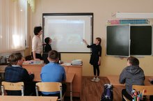 Учащиеся 8 клсса гимназии участвовали на уроках, посвещенных жизни и творчеству Г.Тукая, познакомились интерактивной видеогалереей, отвечали на вопросы викторины. / 8 нче сыйныф укучылары Тукай дәресләрендә "Тукай иҗатының әһәмияте " темасына чыгыш тыңладылар, интерактив видеогалерея белән таныштылар, викторина сорауларына җавап бирделәр