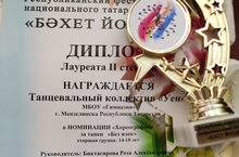 Гимназиянең "Уен" хореография ансамбле "Бәхет йолдызы" республика бәйгесендә катнашып, икенче дәрәҗәдәге Дипломга лаек булдылар. Ансамбль җитәкчесе Роза Александр кызын һәм җиңүчеләрне котлыйбыз!