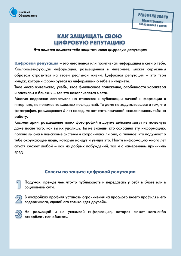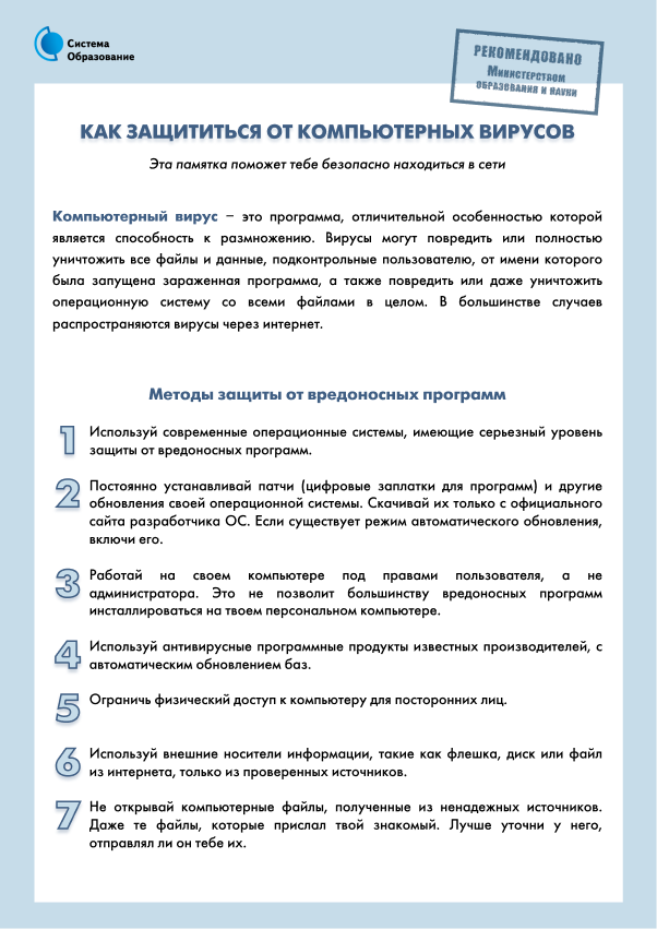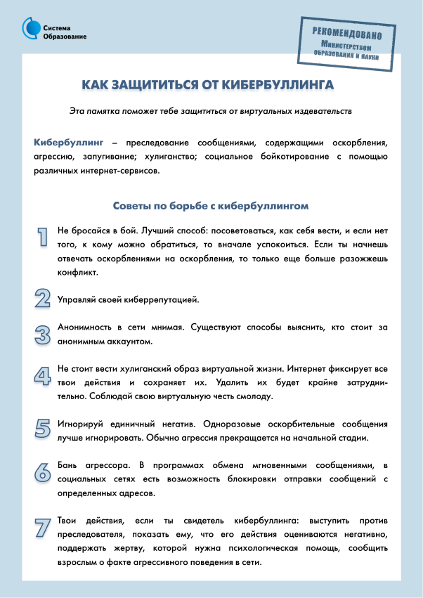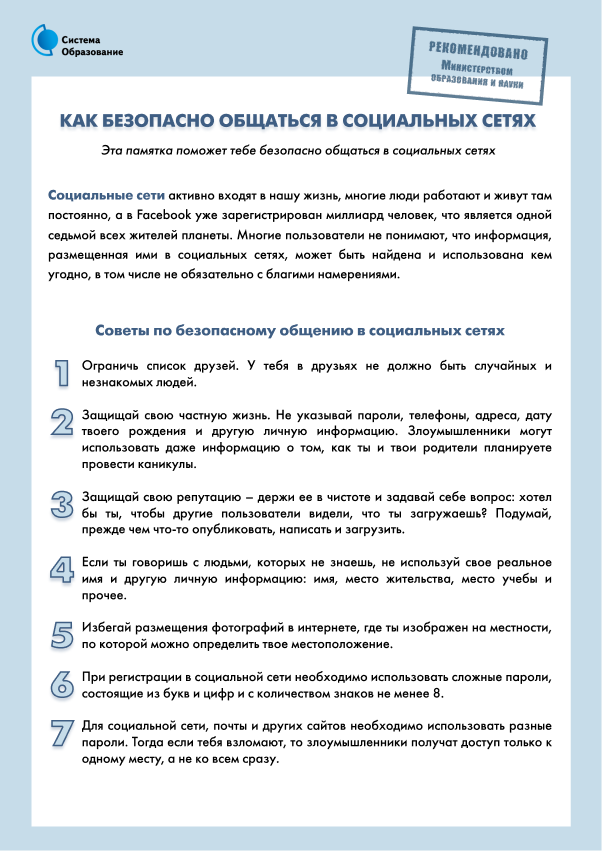Памятки по безопасности в сети Интернет: