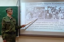 Тәрбияче Мөбарәков р. м.һәм 11 сыйныф кадетлары Сапожников Евгений 24 гыйнварда 7 сыйныф кадетлары өчен "Холокост. Буыннар хәтере". -