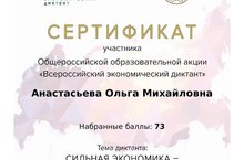В 2021 году Всероссийский экономический диктант состоялся 12 октября онлайн на сайте Всероссийского экономического диктанта в режиме реального времени во всех субъектах Российской Федерации с целью определения и повышения уровня экономической грамотности населения в целом и его отдельных возрастных и профессиональных групп, развития интеллектуального потенциала молодежи, оценки экономической активности и экономической грамотности населения различных субъектов Российской Федерации. В ГБОУ «Мензелинская кадетская школа-интернат» экономический диктант прошли учителя истории и обществознания Анастасьева О.М., Белякова Л.Н. и учащиеся 9, 11 классов. По результатам были награждены сертификатами участника.