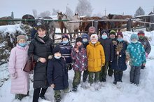 4 февраля учащиеся 3 класса посетили гос.конюшню Мензелинска. Здесь живёт около 70 лошадей. Есть разные породы, а также возраста. Особо всем конечно же понравились жеребцы. Но и мерены не остались без внимания. Местный работник, который ухаживает за лодашьми, рассказал все о жеребцах, о том, что многие участвуют в скачках и даже имеют медали. Ребята приехали не с пустыми руками, а привезли с собой сахар, морковь, яблоки - все излюбленные лакомства лошадок. И им удалось покормить их прямо с рук. Поездка оставила незабываемые впечатления, все остались очень довольны.