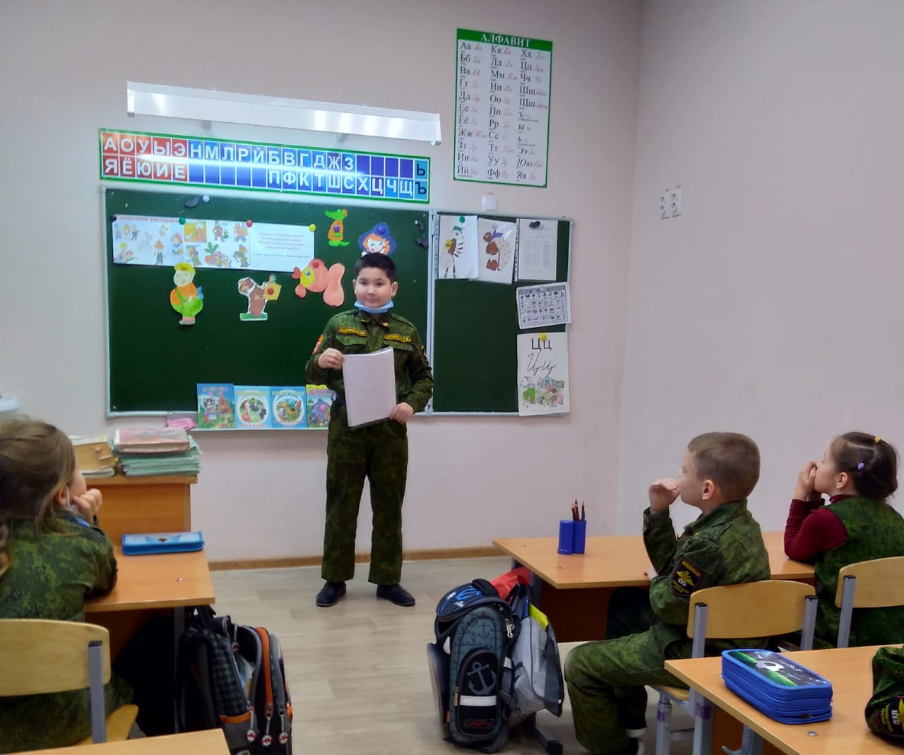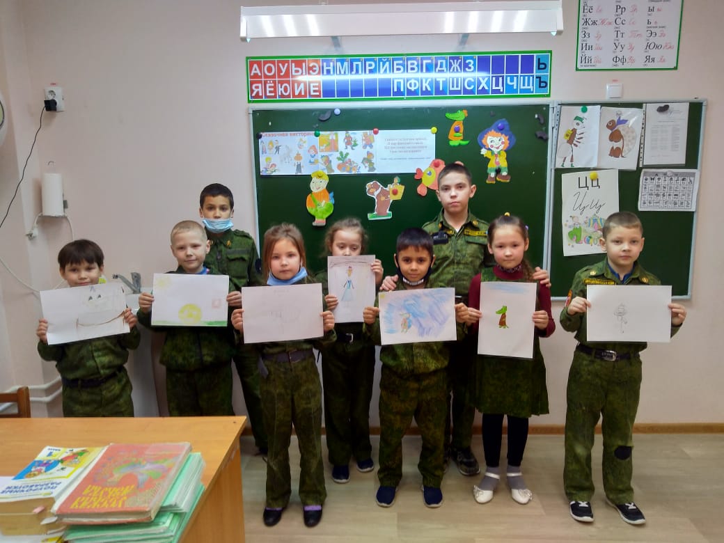 Опубликовано: 28.01.2021В день русского языка и литературы в начальной школе КШИ, учащиеся 4 класса провели викторину в 1 классе «Любимы герои сказок». Нужно было узнать героев по описанию, по одежде, отгадывали стихотворные загадки. А потом все вместе рисовали рисунки. Было интересно и весело.