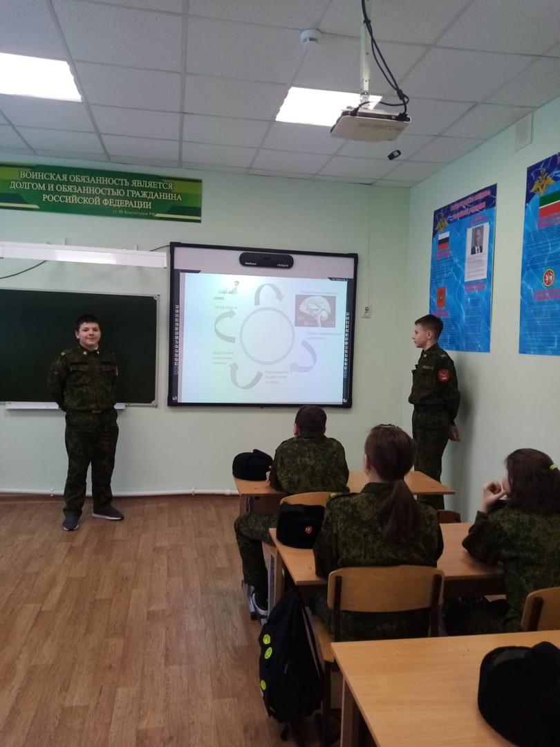 Тәрбияче Мөбарәков р. м.һәм 11 сыйныф кадетлары Сапожников Евгений 24 гыйнварда 7 сыйныф кадетлары өчен "Холокост. Буыннар хәтере". Кадетлар тарихка экскурсия ясадылар, Минск, Донецк, Венгриядә, Киевта һәм дөньяның башка шәһәрләрендә Холокост корбаннарына куелган һәйкәлләр һәм мемориаль комплекслар белән таныштылар. Презентация белән 7 сыйныф кадеты Ибадуллаев Шахин чыгыш ясады.
